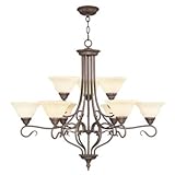 FeaturesBeautiful 2-tier chandelier makes a grand statementGorgeous antique style with scroll detailsImperial Bronze finish over steelVintage Scavo glass shadesDimensions: 38 diam. x 32H in.You find a Best