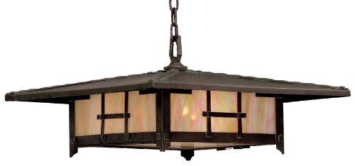 #Finish:Natural Bronze, Glassware:Iridescent Honey, Light Bulb:(3)60w A19 Med F Incand This Craftsman-style iron pendant features Iridescent Honey glass and a Natural Bronze finish with Verde wash. May be used indoors or outdoors..