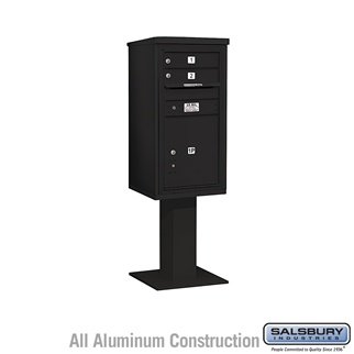 FeaturesIncludes 26 H Pedestal and Master Commercial Locks.4C pedestal mailboxes.Constructed of heavy gauge aluminum and stainless steel hardware.Accessed from the front through easy opening master door panel.Single Column. 4C Pedestal Mailbox (Includes 26 Inch High Pedestal and Master Commercial Locks) - 9 Door High Unit (62-1/8 Inches) - Single Column - 2 MB1 Doors / 1 PL5 - Black?