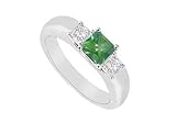 Three Stone Emerald and Diamond Ring : 14K White Gold - 0.25 CT TGW Size 10.5