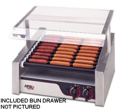 APW Wyott HRS-31SBD 240 Hot Dog Grill, Bun Drawer, Slanted Non Stick Rollers, 460-Franks, 240 V, Each