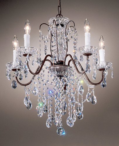 FeaturesFinish: English Bronze - Swarovski SpectraUses five 60W candelabra bulbsPictured in English BronzeCrystal Shown: Crystalique22 in. L x 22 in. W x 23 in. H Classic Lighting 8395 EB SC Swarovski Spectra Crystal Daniele 23" Crystal Chandelier from the Daniele Collection?