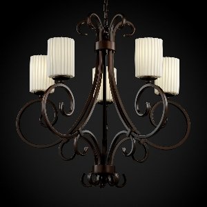Justice Design POR-8570-35-LEAF-NCKL Victoria 5-Uplight Chandelier The Limoges™ Collection brings fine translucent porcelain to the world of lighting. Designed and imported exclusively by Justice Design Group, LLC, each fixture reveals its delicately sculptured form and detail when illuminated. Highlights of the Limoges Collection™ include: