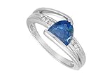 Sapphire and Diamond Ring : 14K White Gold - 1.25 CT TGW Size 10.5A trillion-cut created blue sapphire is delicately held between two sleek gold bars. Rose-cut round diamonds are channel-set on each side of the gemstone. This stylish ring is made in 14K white gold & has a total gem weight (TGW) of 1.25 carat.