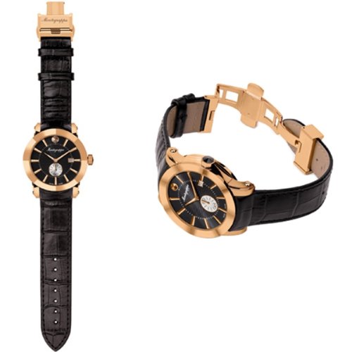 The Montegrappa NeroUno Gold Plated Black Lifestyle Watch. This collection of Swiss-Made watches was designed to match our iconic NeroUno pens and cuff-links. Watches feature: