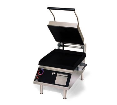 Star GR28IB Pro-Max Two-Sided Grill?Pro-Max Two-Sided Grill electric 14"x28" fixed lower grill (2) hinged upper grills HD smooth iron grill plates thermostatic control rear grease receptacle stainless steel front & sides 7200w