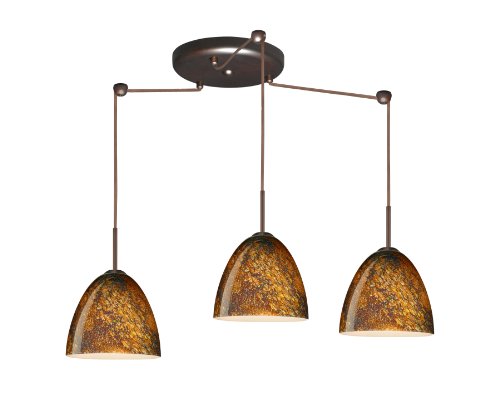 Besa Lighting 3JC-4470CE-BR 3 Light Vila Round Multi-Light?Light Bulb:(3)60w A19 Med F Incand, Glass:Ceylon, Finish:Bronze This three light pendant fixture provides a beautiful, flexible solution for decorative lighting. Handcrafted European glass 10' Clear-coated SVT cords Includes three stem hooks Suitable for sloped ceilings Dimmable with standard incandescent dimmer