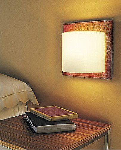 | Ribi wall sconce - small, Nickel Dark Leather, 220 - 240V (for use in Australia, Europe, Hong Kong etc.), Cartulina #Products description: - The Ribi wall sconce from Bover was designed by Taller and Estudi Bover and made in Barcelona, Spain. The Ribi wall sconce is made for indoor installation by a team of designers that are able to understand, fulfill and be ahead of end-users s trends and needs. Bover s designers aim is to define a commercial line that knows how to balance quality and form and results in a non-temporal style capable to adapt comfortably to future times. This fixture is available in Satin Nickel, Nickel Dark Leather and Nickel Cuir Leather with Parchment, Veneciana Ochre, Pleated, Cotton or Cartuline Shade. - Manufacturer: - Bover - Designer: - Taller and Estudi Bover - 2003 - Made - in: - Barcelona, Spain - Dimensions: - Small: Height: 10.2 - (26cm) X Width: 9.4 - (24cm) - Large: Height: 10.2 - (26cm) X Width: 14.5 - (37cm) - Light bulb: - 1 X 60W E27 Incandecent - Material - Metal, fabric