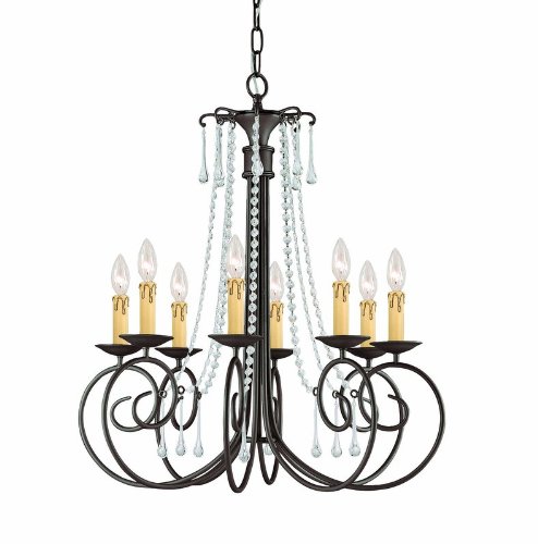 Crystorama Lighting 5208-DR-CL-SAQ chandelier from Soho collection?SOHO Natural Wrought Iron Chandelier Accented with Swarovski Spectra CrystalThe charming SOHO Collection from Crystorama offers chandeliers that blend wrought iron with just enough crystal flair to work with any environment. The delicate dressings of Clear Swarovski Spectra Crystal coordinates well with the soft curves of this simple Dark Rust chandelier, making it the perfect choice for any dining room or living space.Collection: SohoInteriorCategory: ChandelierCrystal Type: Swarovski SpectraPrimary Material: Wrought IronWeight (lbs): 20Width (in): 28Height (in): 31Depth (in): N/AOverall Height (in): 103Chain or Rod Length (in): 72Wire Length (in): 120Number of Lights: 8Wattage: 60Listing: UL, CULShips Via: UPSLead-Time: Made to Order / 5 - 10 Business Days