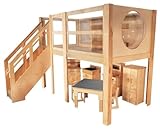 | ✚✚✚ Strictly for Kids SF5046SA60120L Mainstream Explorer 5 Expanded School Age Loft, Steps Left, Blue Carpet Preferred Strictly for Kids Mainstream School Age Explorer 5 Expanded Size Loft with steps on the Left. Includes a mirror, book display & bubble panel above to create a quiet reading space, open below for dramatic play or other activities. Super industrial strength construction of solid maple, Baltic Birch plywood, clear unbreakable Lexan windows and fully carpeted. 120''w x 60''d x 60''h deck, 130''w x 109''d x 105''h overall, Blue MagiCarpet. Assembles easily in approximately 1 to 2 hours. Lifetime warranty.